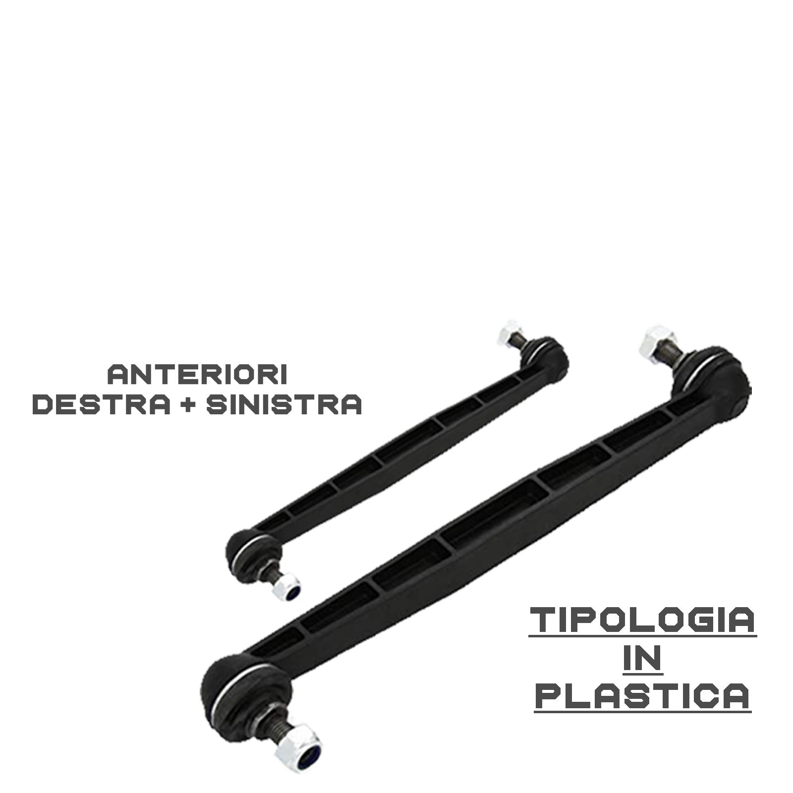 Für bestimmte Fahrzeuge gibt es weniger verbreitete Lösungen, bei denen ein Ende mit einem Gewinde und das andere mit dem Kugelgelenk versehen ist, oder in viel selteneren Fällen, bei denen beide Enden mit einem Gewinde versehen sind. Diese Spurstangen dienen der mechanischen Verbindung von Stabilisator und Stoßdämpfer und werden mit einfachen Sechskantmuttern an den Befestigungspunkten befestigt; Es handelt sich daher um Komponenten, die für die Funktion des Stabilisators (massive Stahlstange) notwendig sind und ein übermäßiges Wanken des Fahrzeugs bei Kurvenfahrten verhindern.