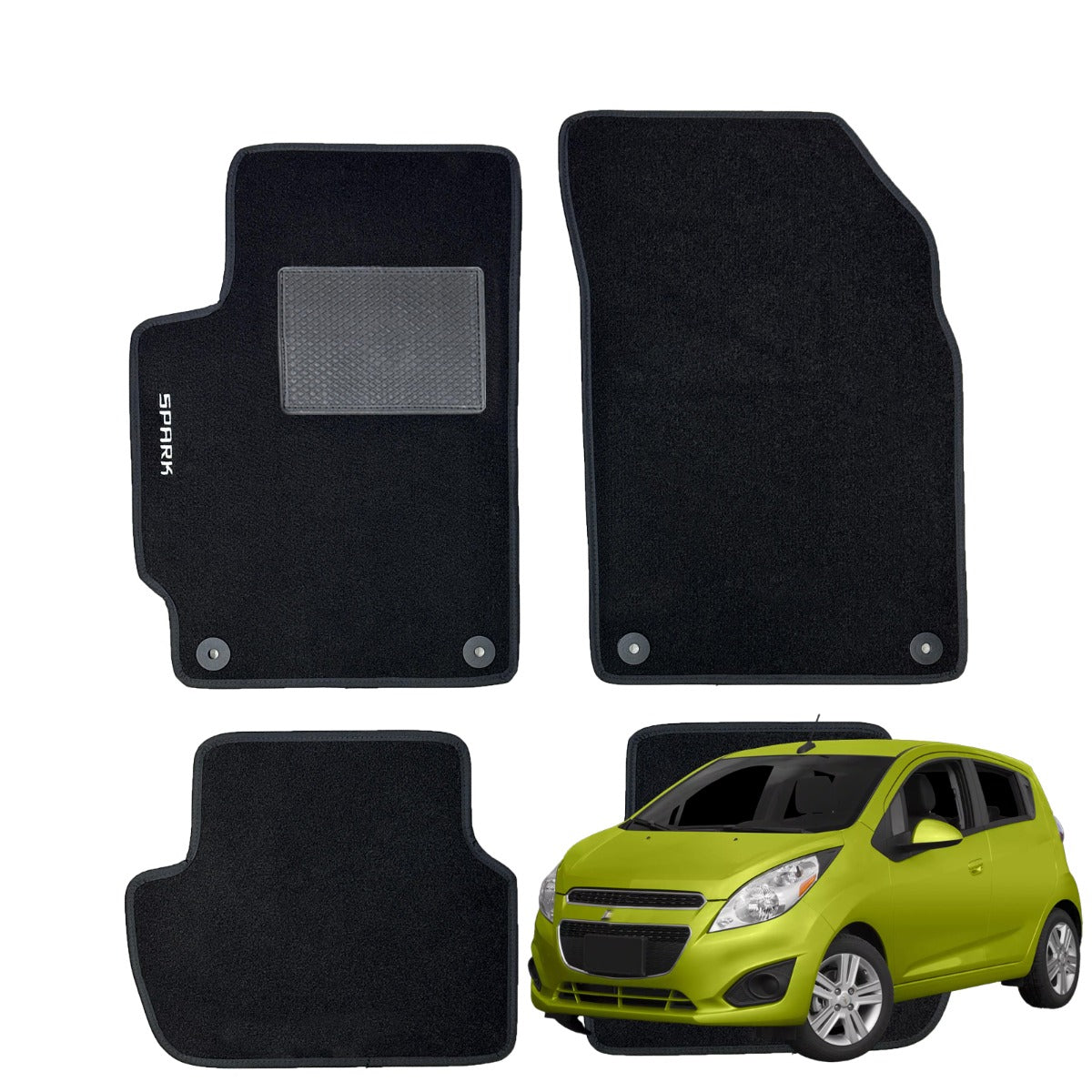 SERIE 4 TAPPETI - TAPPETINI IN MOQUETTE NERI PER SPARK dal 2013 in poi