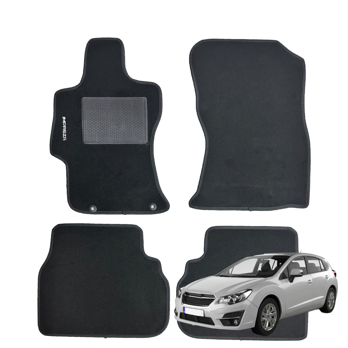 SERIE 4 TAPPETI - TAPPETINI IN MOQUETTE NERI PER IMPREZA DAL 2017 AL 2023