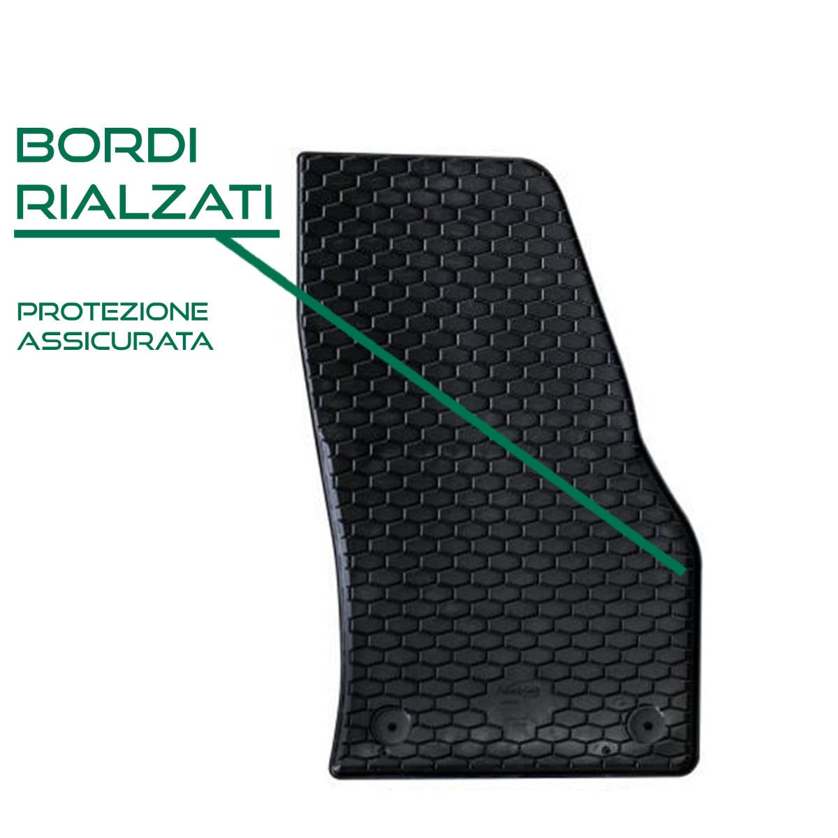 I bordi alti impediscono che acqua, terra o altri residui finiscano sulla moquette originale, offrendo una protezione completa dell'abitacolo.