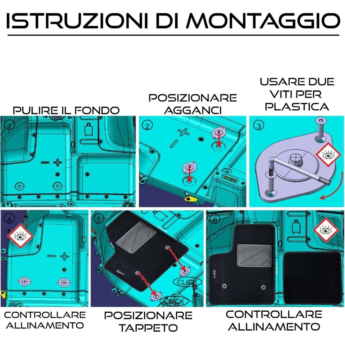 SERIE 2 TAPPETI - TAPPETINI IN MOQUETTE NERI PER CITROEN AMI 2020> + Kit Agganci
